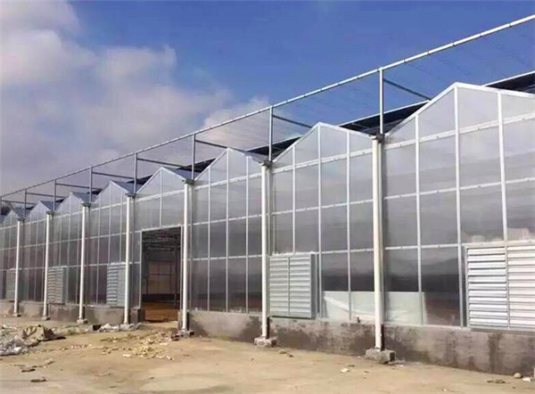 頂部覆蓋采用防紫外線防結(jié)露聚碳酸酯中空板,四周墻體按常規(guī)要求為聚碳酸脂中空板或采用玻璃,根據(jù)地區(qū)氣候條件的差異,在一些寒冷地區(qū)(如東北等地),北墻體可采用保溫復(fù)合板,還可以安裝推拉窗,增加溫室通風(fēng)面積。